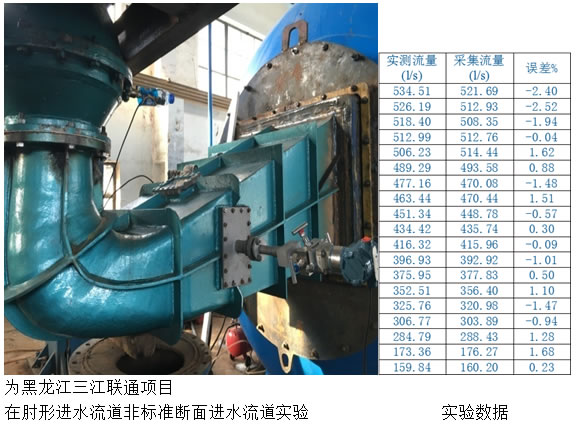 本次测试在水泵模型装置上进行,水泵模型转轮直径为300mm,理论上讲,其测流精度在测流断面几何尺寸增大后会相应提高。