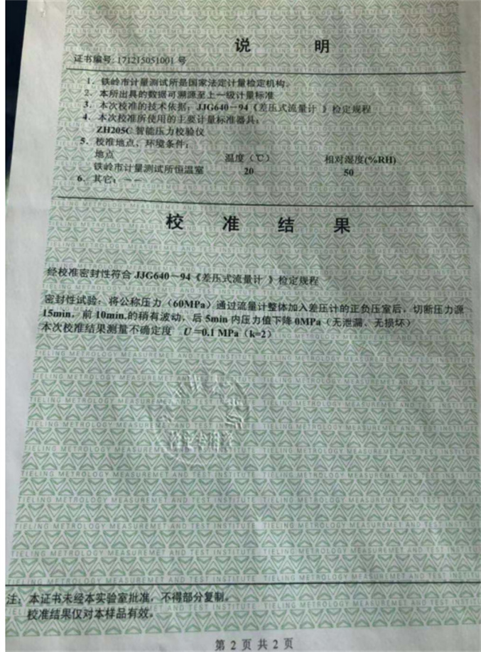 毕托巴流量计压力测试报告