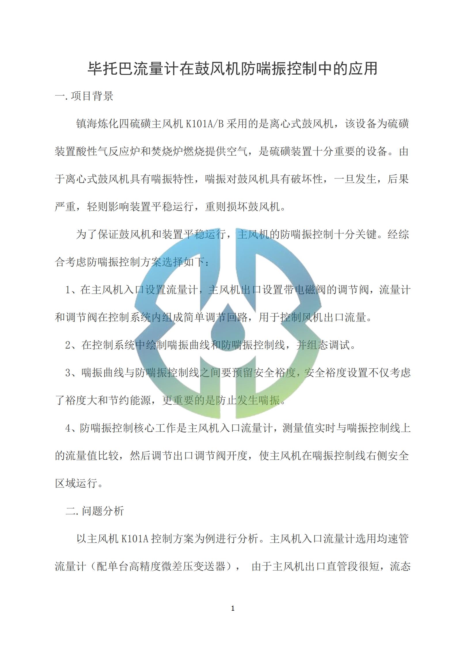 毕托巴流量计在鼓风机防喘振控制中的应用